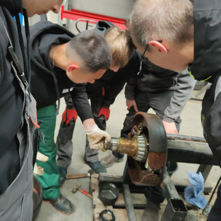 Kolejne zadanie to naprawa i regulacja układu hamowania, demontaż i montaż osi hamulcowych, bębna i kontrola szczęk hamulcowych.