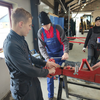 Początek zajęć to szybka teoria i plan działania na cały dzień. Przygotowane zadania dotyczyły sprawdzenia osi przedniej ciągnika CASE IH 885 XLA, a także demontaż i montaż sworznia obrotowego osi przedniej. Podczas zadania poruszane były również zasady działania przekładni planetarnej, opis części luźnych, a także zadanie wymagało odnalezienia części zamiennych w katalogu części.