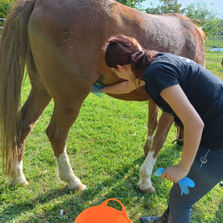 Uczestniczki praktyk dzielnie sobie radzą nie tylko z trudami porannego wstawania, ale także z codziennymi problemami natury zawodowej hodowców koni. Często jest to konieczność opatrywania urazów lub schorzeń u koni, a nie zawsze jest to miłe dla oka. Ale to taka profesja nie zawsze jest pięknie i miło czasami muszą być twarde i odporne na nieprzyjemny widok, ale z miłości i pasji do koni dzielnie znoszą trudy poznawania zawodu i rozwijania swoich kompetencji kluczowych w tej dziedzinie.