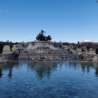 W drodze na parking udaliśmy się pod fontannę Gefion (dun. Gefionspringvandet) – fontanna w porcie w Kopenhadze, autorstwa rzeźbiarza Andersa Bundgaarda, przedstawiająca nordycką boginię orzącą ziemię z pomocą swoich synów przemienionych w woły, a następnie przeszliśmy ogrodami pod pomnik małej syrenki z Kopenhagi.